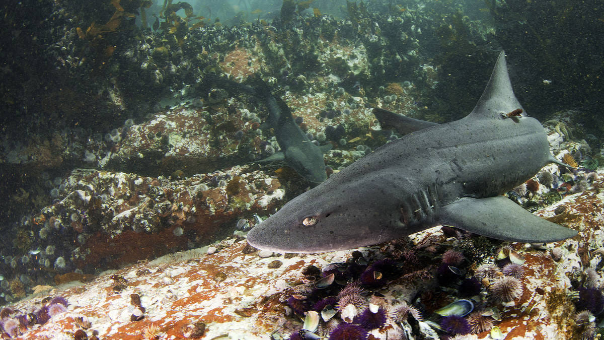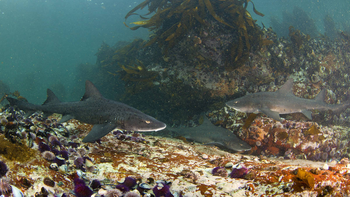 Pyramid Rock is unique in that you have a strong chance of diving with many smaller species of sharks at a depth of 12 metres. A thick kelp forest borders the channel making this quintessential habitat.