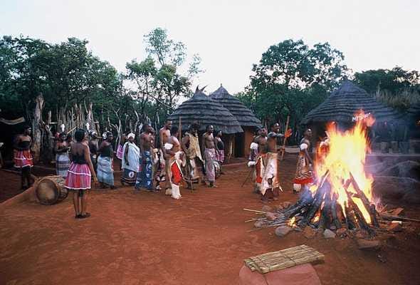 As the sun sets behind the mountains, drums beat in the Chief’s Kraal, to announce the arrival of torch lit processions of choirs and dancers, who use song and dance to tell the story of their culture and history.